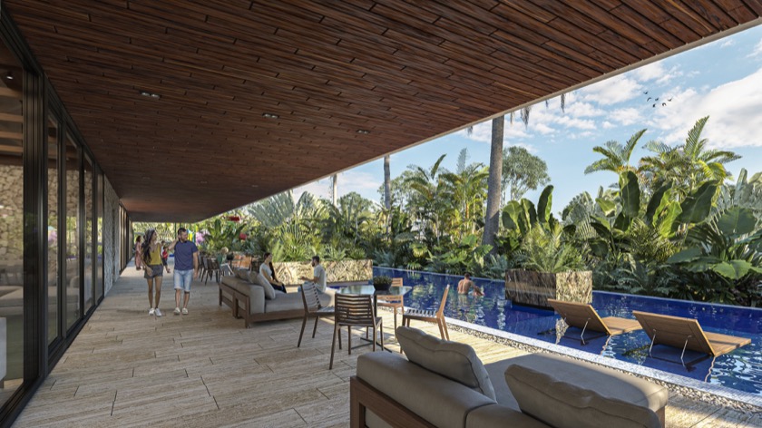 • Casa club con piscina, chapoteadero infantil, regaderas, gym equipado, terraza techada